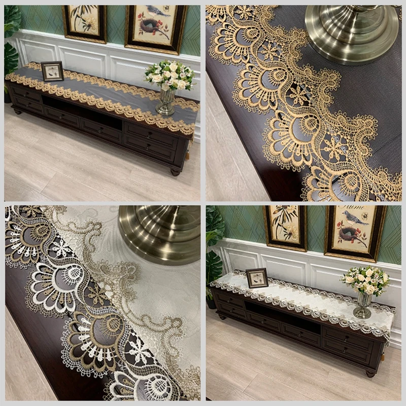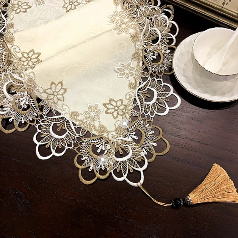 Oval Lace Table Runner Long Dust Cover Embroidered Pendant Tassel for Bedrooom Rustic Wedding Party dining Table Decor